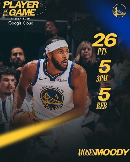 赛后,勇士官方评选本场最佳球员,穆迪当选。