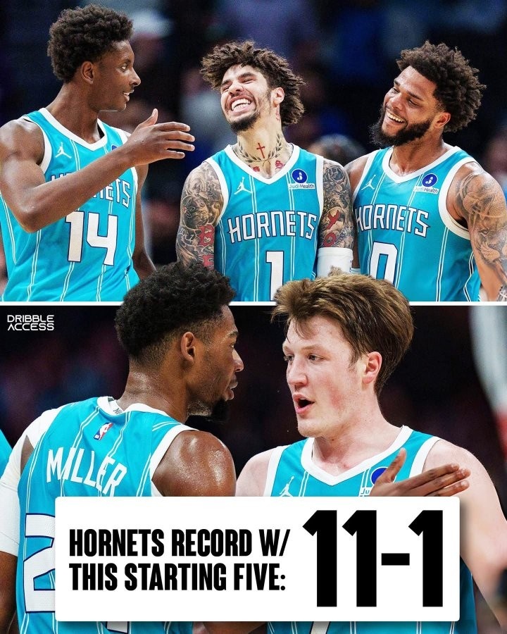 据统计,黄蜂使用拉梅洛·鲍尔、布兰登·米勒、克尼佩尔、布里奇斯、迪亚巴特这套首发的战绩为惊人的11胜1负。