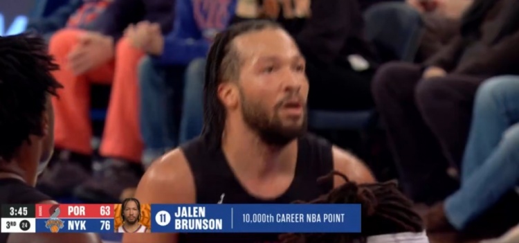 第三节布伦森罚球拿到本场第20分,这是他生涯的第10000分。
