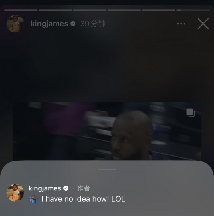 1月31日讯 今日,湖人142-111客场大胜奇才。赛后,湖人前锋詹姆斯更新了Instagram Story。