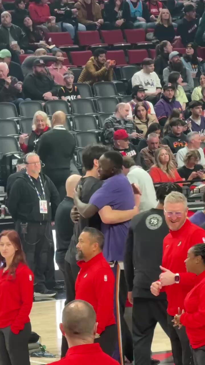 好兄弟别来无恙!小吧捕捉到杨瀚森和马卢阿奇热情打招呼~