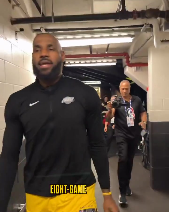 众将球员通道内很兴奋!詹姆斯:8连客在外两周了 终于要回家咯