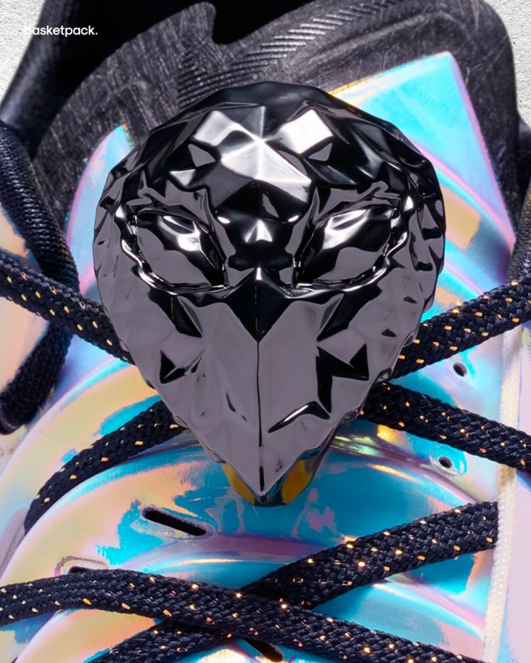 这双Nike G.T. Cut 4和此前曝光的几位球星签名鞋一样都是属于Warning Label系列,鞋面都采用了亮面金属质感材质。而作为文班亚马的PE,鞋后跟有代表文班亚马的外星人头像Logo。鞋带位置则有一个外星人造型的配饰。