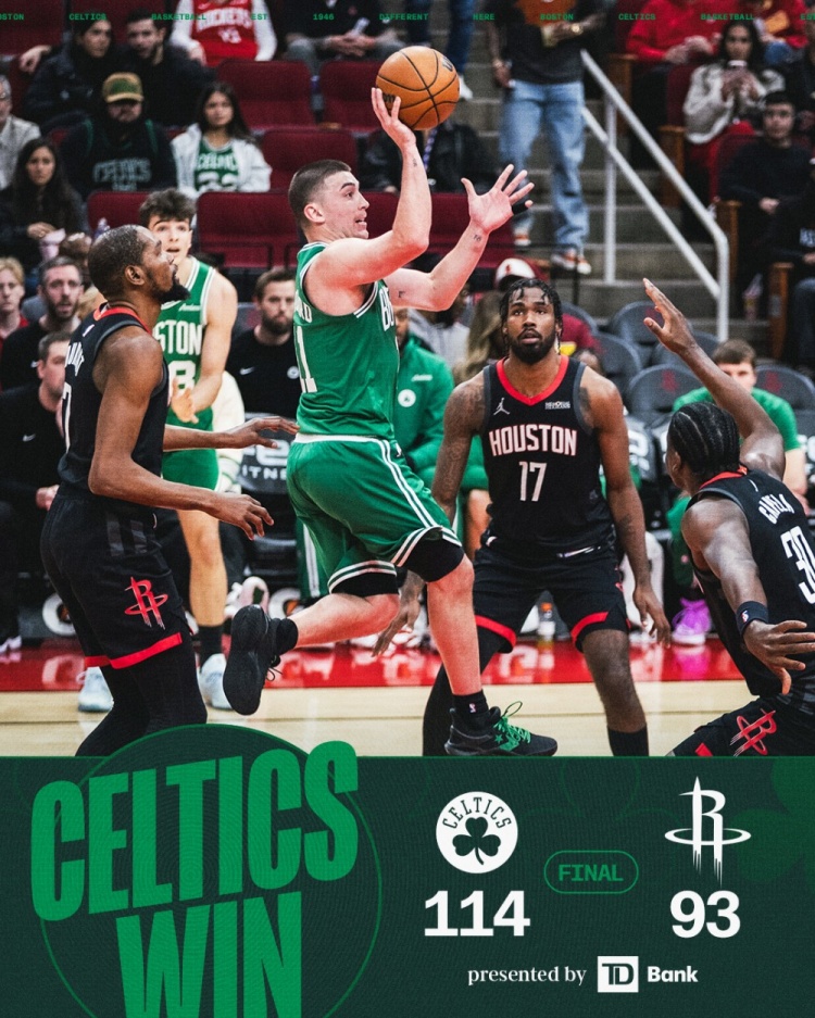 2月5日讯 NBA常规赛,凯尔特人114-93大胜火箭。