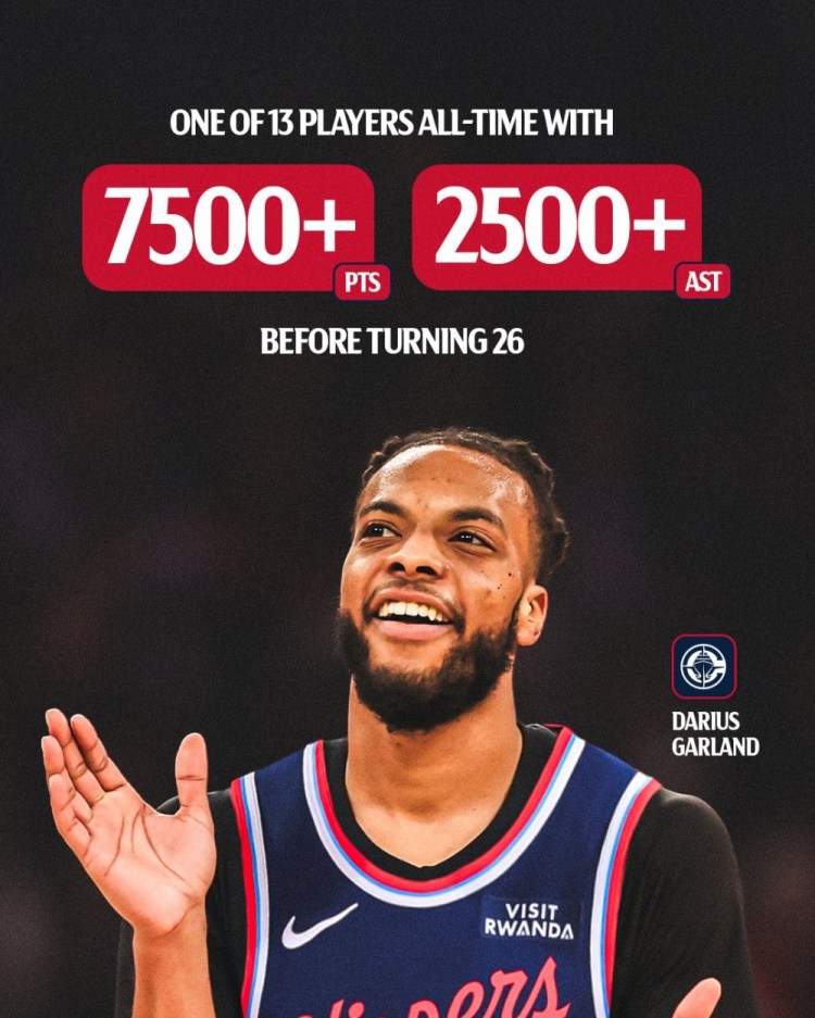 未来可期!快船晒加兰数据海报:26岁之前已砍7500+分2500+助