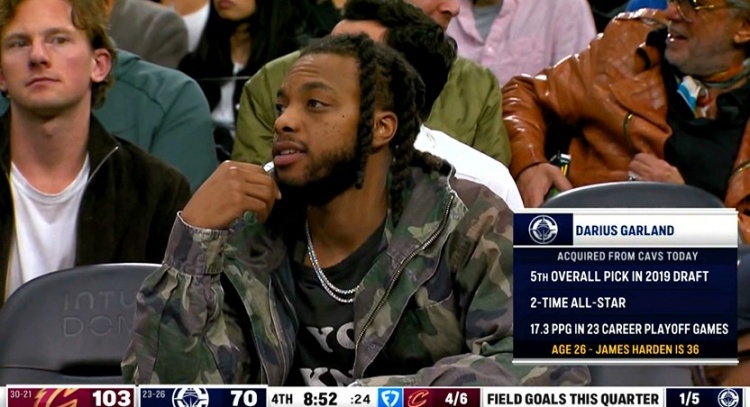 加兰现身快船替补席!转播方着重提醒:加兰才26岁 哈登36岁了
