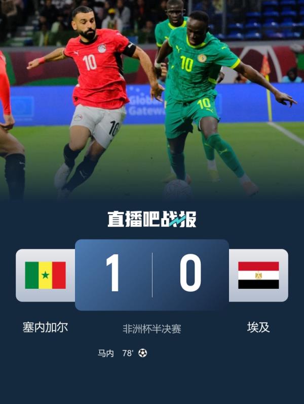 2025年非洲杯:塞内加尔1-0埃及晋级决赛,马内打入制胜进球。