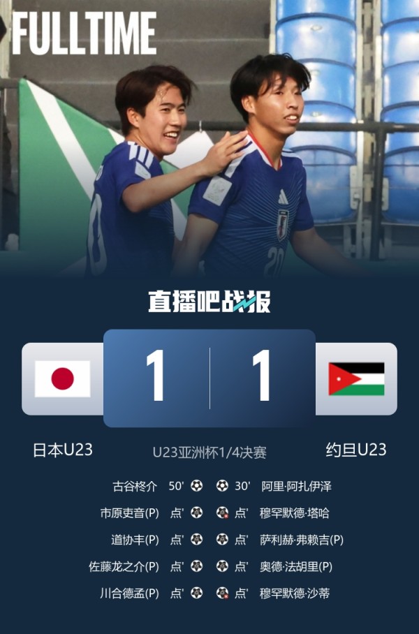 进4强!U23日本点球淘汰约旦 约旦门将扑点提前庆祝皮球反弹入网