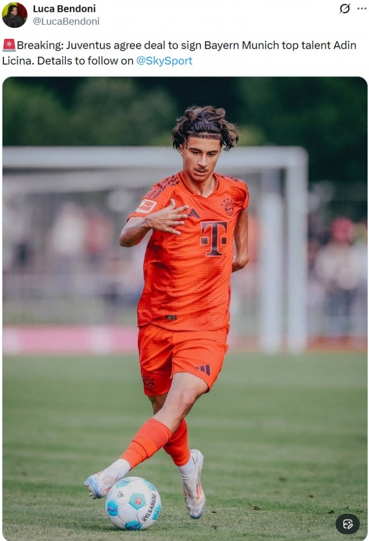 1月31日讯 据记者Luca Bendoni报道,尤文将签下拜仁天才小将阿丁·利奇纳。