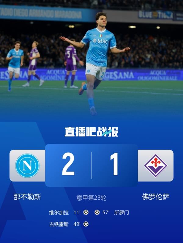 先赛升第3!那不勒斯2-1佛罗伦萨 维尔加拉传射迪洛伦佐伤退