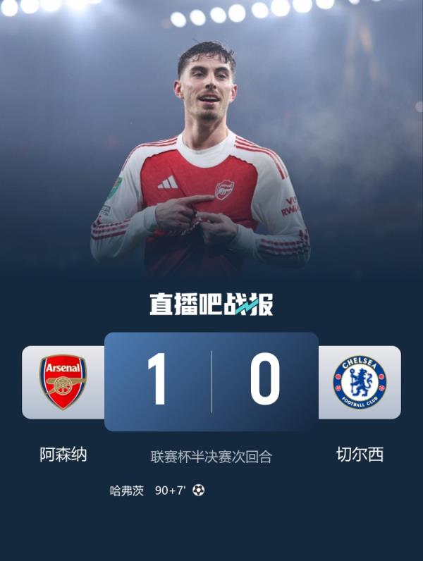 阿森纳次回合1-0战胜切尔西,总比分4-2晋级联赛杯决赛!决赛将会对阵曼城vs纽卡的胜者。