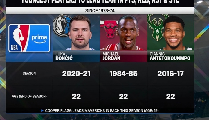 历史上最年轻的得分、篮板、助攻、抢断均领衔全队的球员: