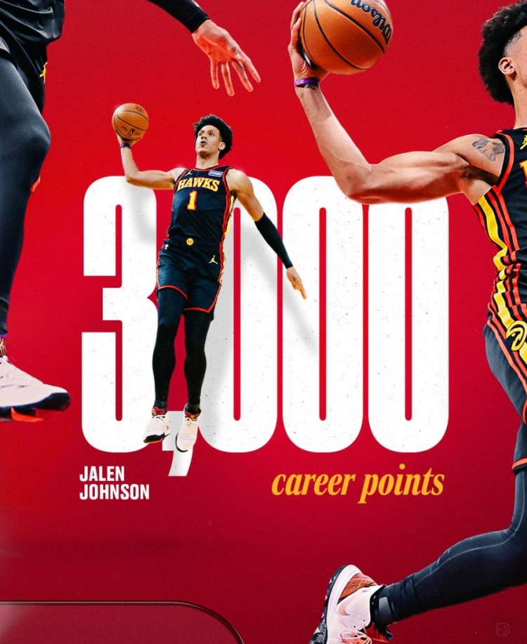 新鹰王上位!杰伦·约翰逊生涯总得分突破3000大关