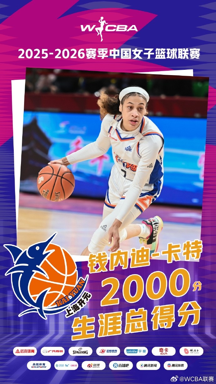 心・里程碑!恭喜上海女篮外援钱内迪·卡特解锁职业生涯2000得分