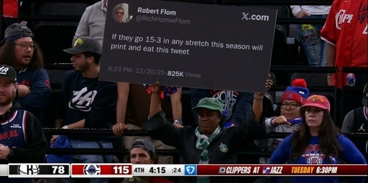 若快船15胜3负要吃推文?球迷本人:明天我直播吃 欢迎大家收看
