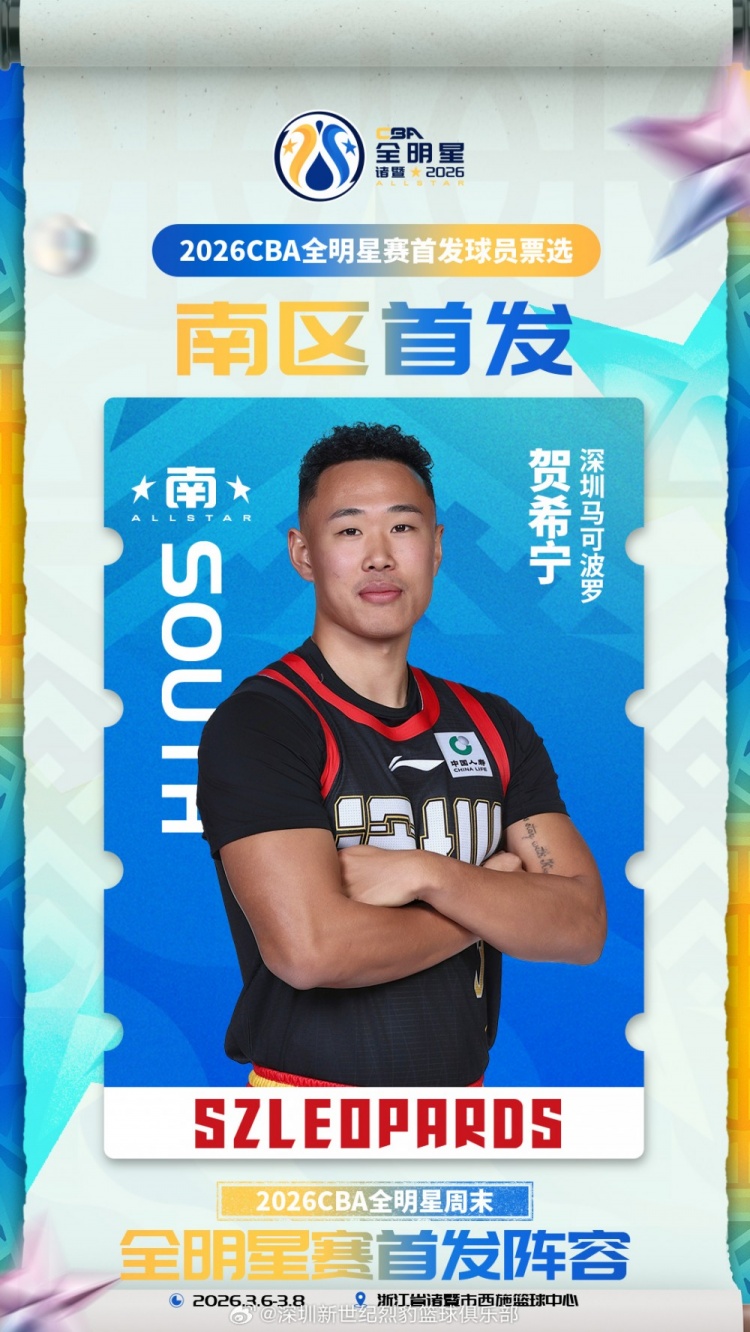 贺希宁成功入选南区首发阵容 感谢每一位投出宝贵一票的球迷