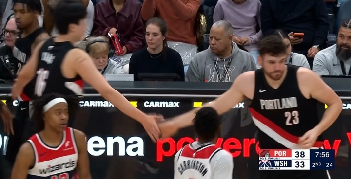 杨瀚森7分30秒拿2分1板1助 开拓者半场53-60落后奇才 萨尔19分