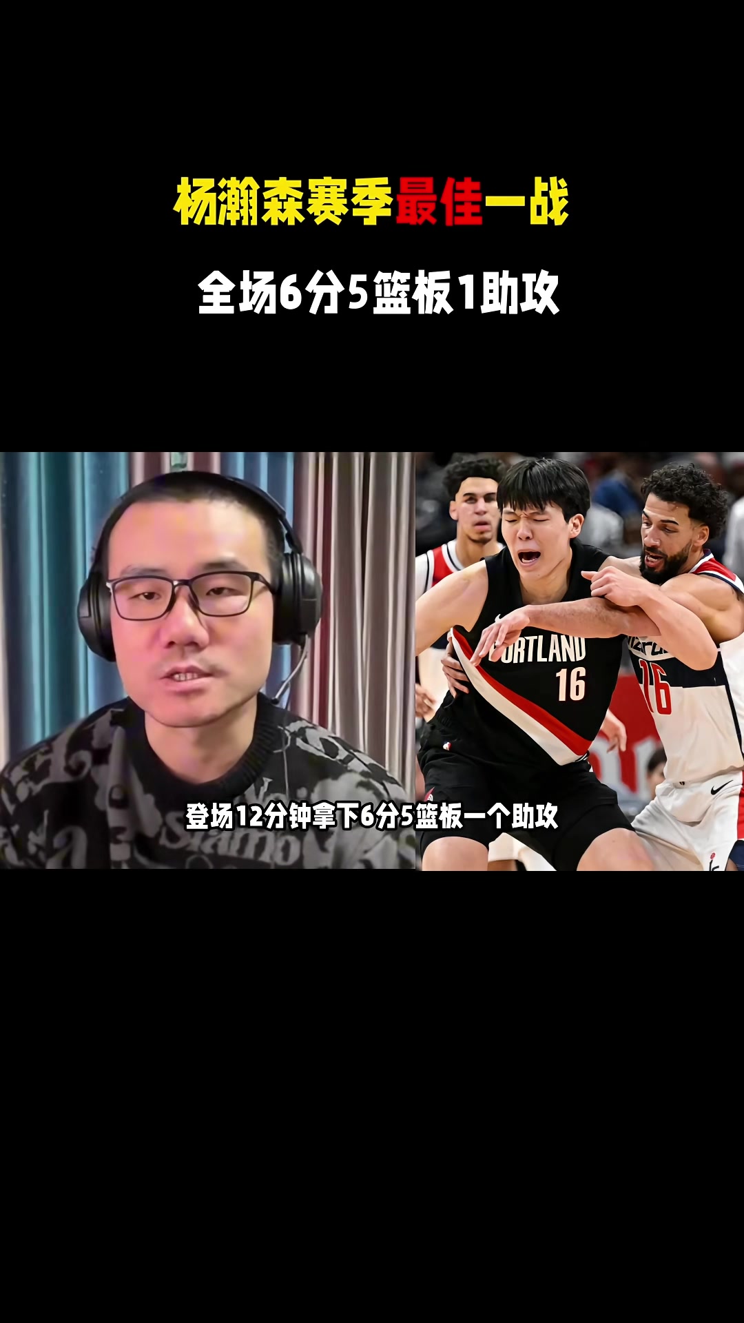 拓媒:这或是杨瀚森本赛季最好的一场 他在场时球队在赢分