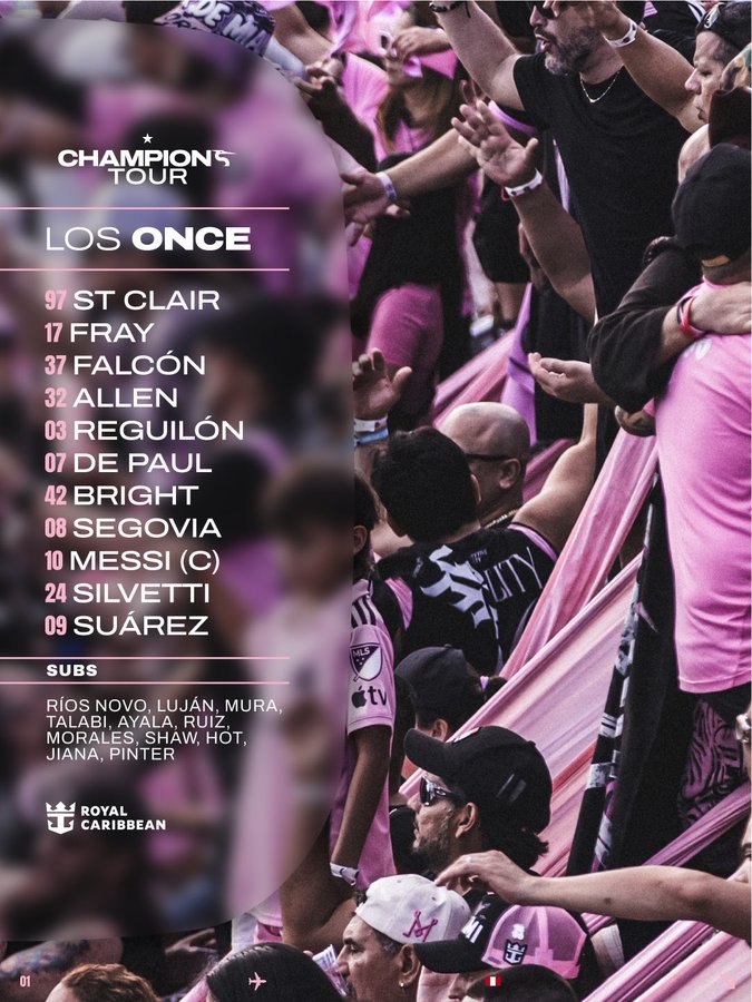 01月25日讯 友谊赛,迈阿密国际对阵秘鲁球队利马联盟,赛前首发名单公布。