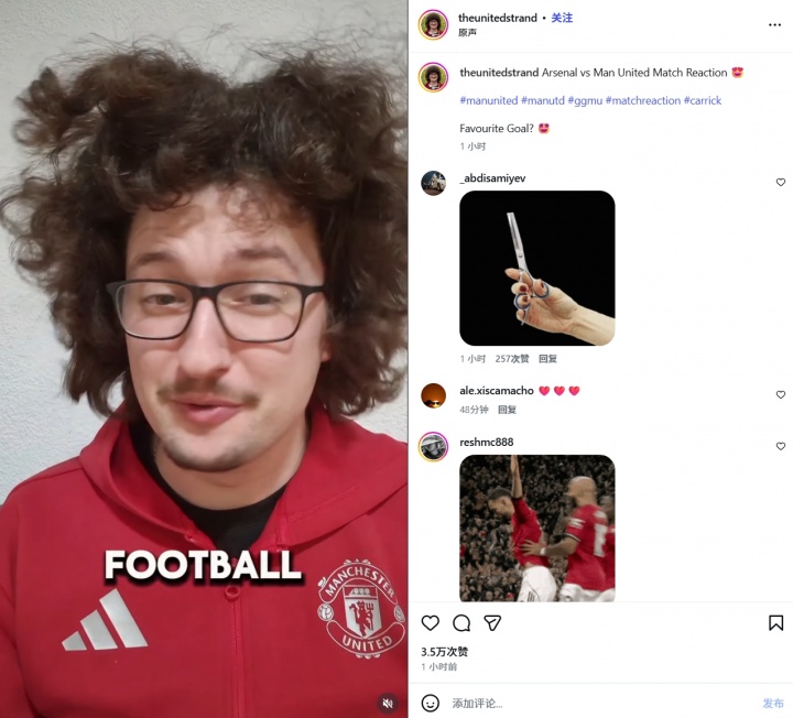 01月26日讯 英超第23轮,曼联客场3-2战胜榜首阿森纳。赛后,曾喊话“曼联不五连胜不理发”的蓄发哥伊莱特更新社媒,表达自己对于曼联获得胜利的欣喜。