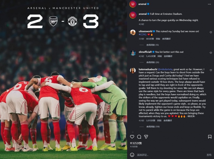 随着近几轮战绩起伏以及本场输球,球迷情绪不满肉眼可见的愈发强烈。本场的战报下,虽然仍然有不少态度积极的枪迷,但表达不满的人远比此前多得多。一些内容如下。