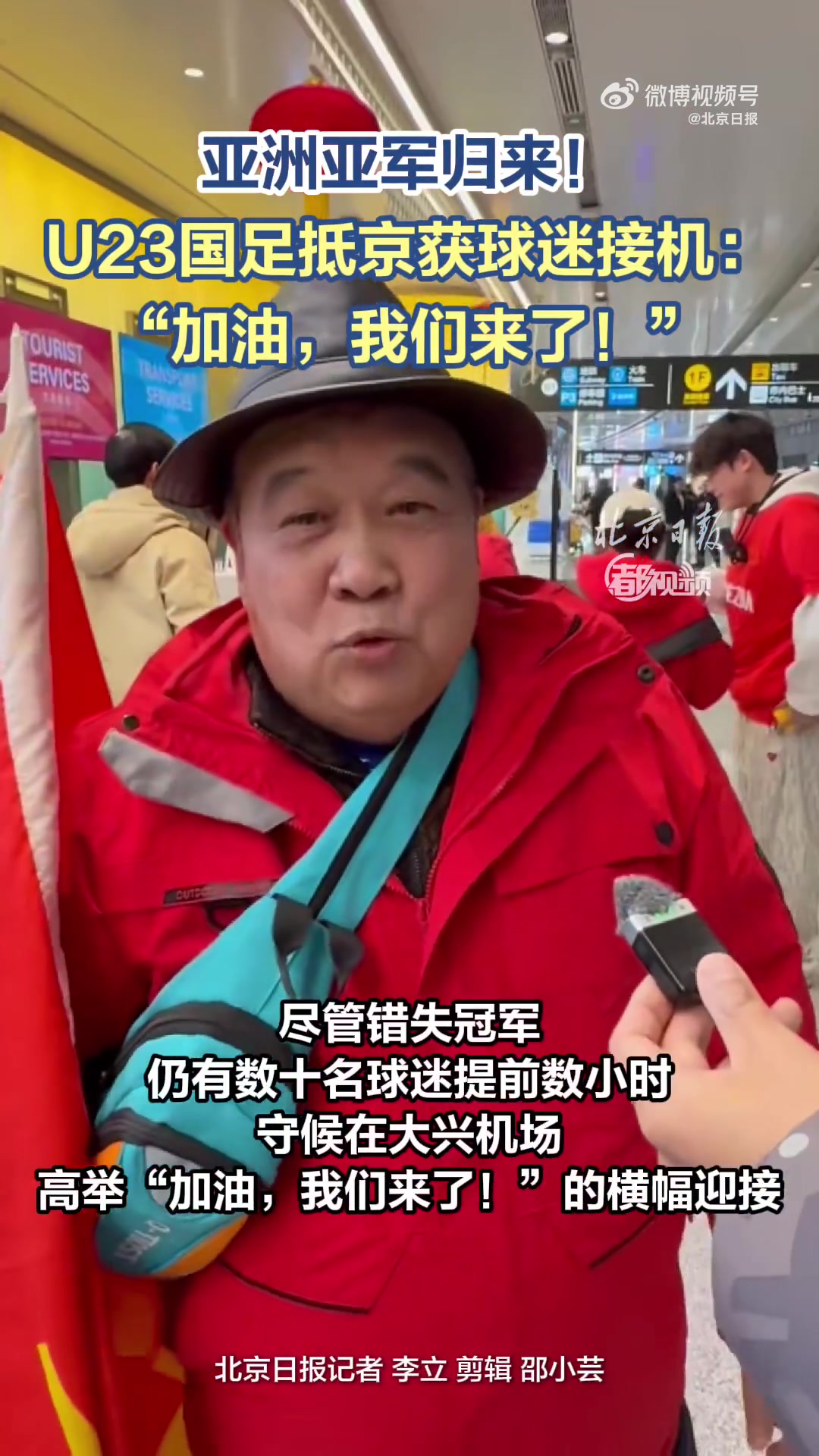 U23国足抵达北京!北京日报:数十名球迷提前数小时接机+高举横幅