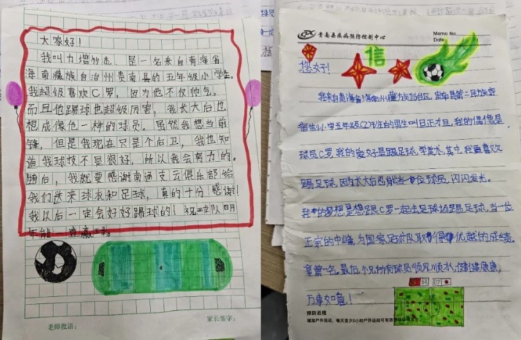近日,俱乐部收到了一封球迷伏嵩伟的来信,字里行间流淌的真挚与热忱,让俱乐部上下为之动容。作为扎根大山的支教者,伏嵩伟在信中描绘的场景,勾勒出少年足球最本真的模样:“这里的学校足球氛围很浓,操场总能被孩子们的身影填满。十几个孩子围着一个甚至有些瘪塌的足球奔跑追逐。”