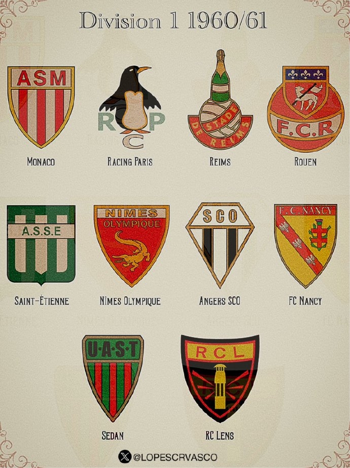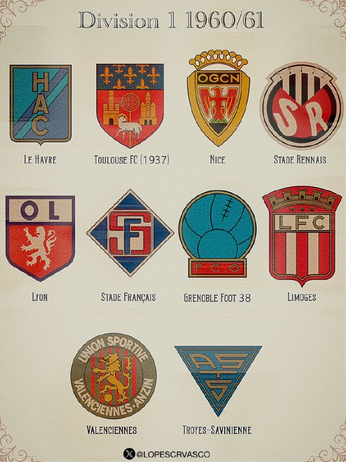六十多年前的法甲各队队徽